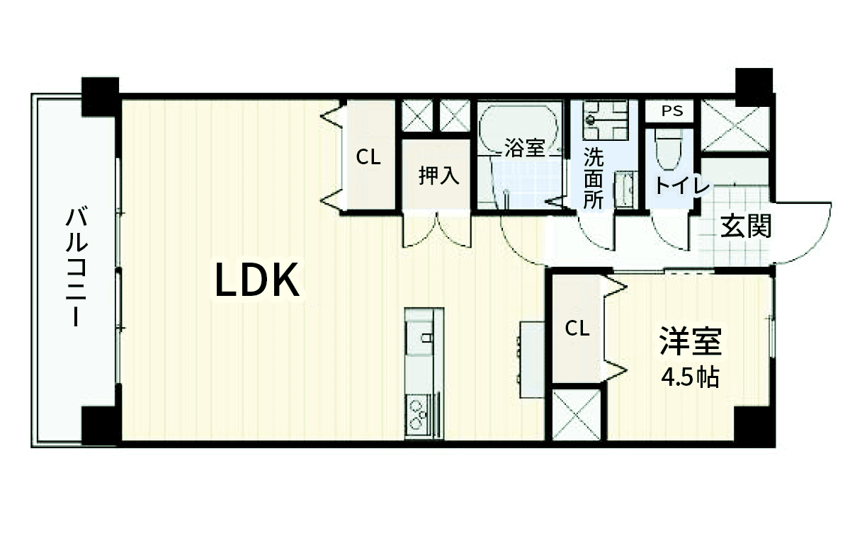 間取り変更、フローリング張替え、設備(トイレ、洗面台、キッチン、ユニットバス)、配管やり直し、クロス貼替え |