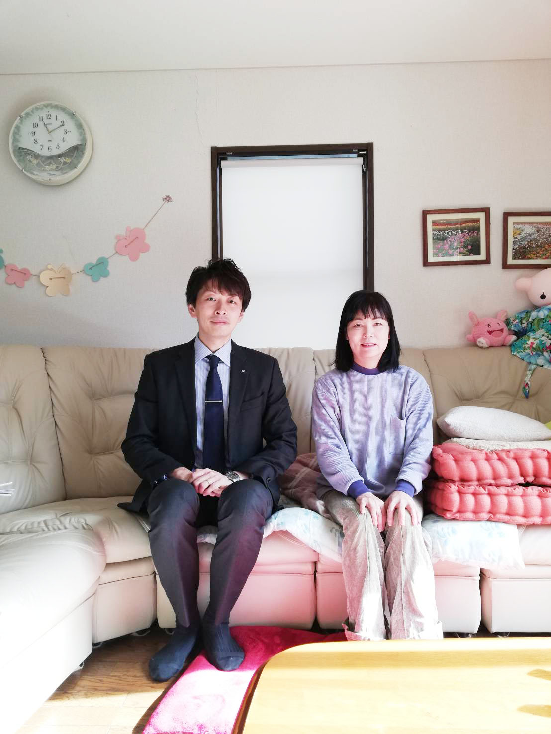 いつも明るく迎え入れていただき、有難うございました!リビングのカーテンをロールスクリーンへと交換したことで、とてもすっきりとした印象に変わったと思います。住宅は少しずつ手入れしていくことで、永く快適にお住い頂けますので、今後とも宜しくお願いいたします。