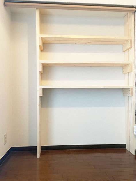 この度は工事のご依頼いただきありがとうございました。梁下のデッドスペースに造作棚を作ったことにより、収納の幅を広げることができました。気に入っていただき大変嬉しく思います。今後もお困りごとがありましたら、お気軽にご連絡下さい。