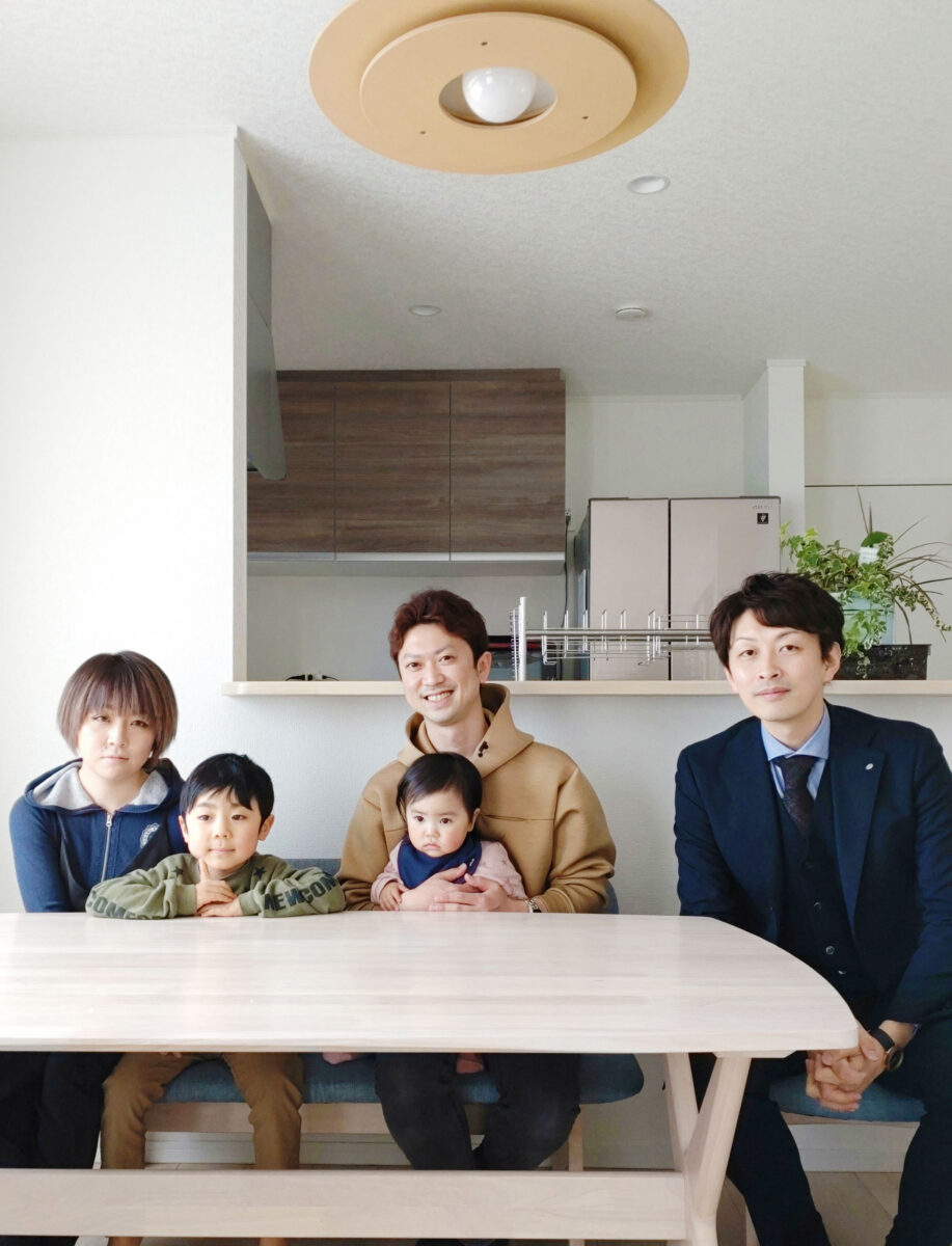 この度は新築オプション工事について、ご用命頂きまして誠に有難うございました。お選びいただいた照明やカーテンレール、そして家具の木調がとても合っており、統一感のあるインテリアに仕上がりました。キッチンカップボードの存在感も光っていますね。カーテンの合わせ方にも脱帽でした!お子様たちも伸び伸びと過ごせる空間で、これからの毎日が楽しみですね♪お庭の造園計画含めまして、今後とも末永く宜しくお願いします👍