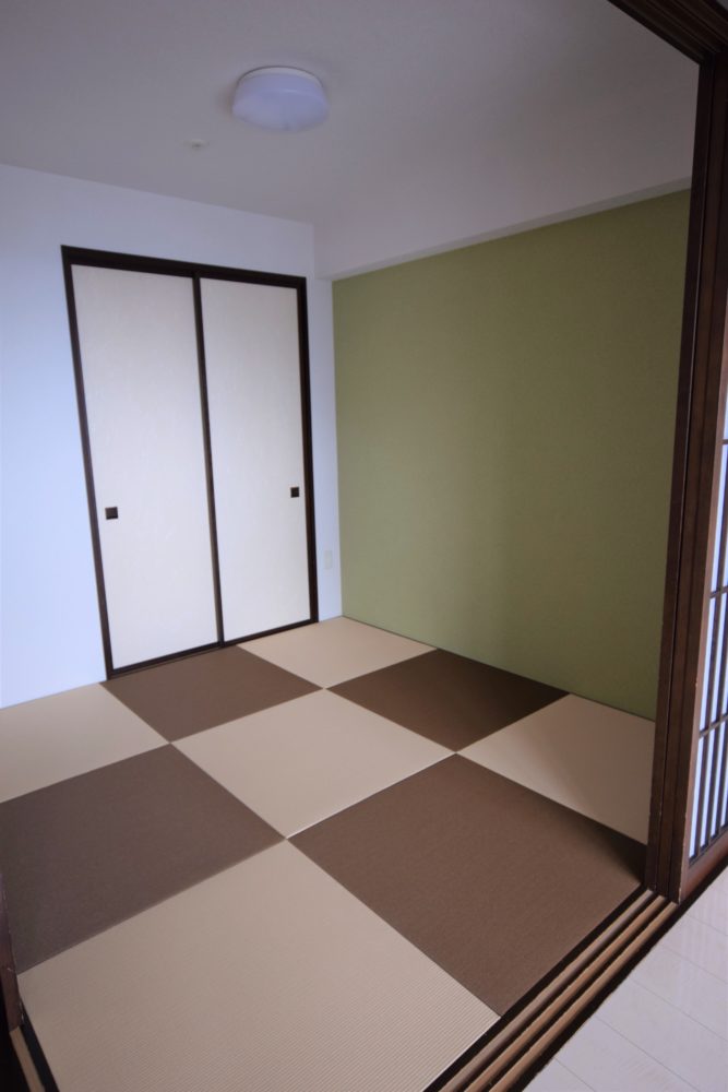 大切なご新居なので、デザイン性の高い壁紙や琉球風畳のご提案を致しました。また、洗面台は機能性重視でタッチレス水栓をお選び頂きました。ご希望に沿えた工事となっていたら幸いです。