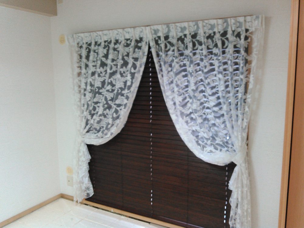 バンブーブラインド、レースカーテン、ピクチャーレール |