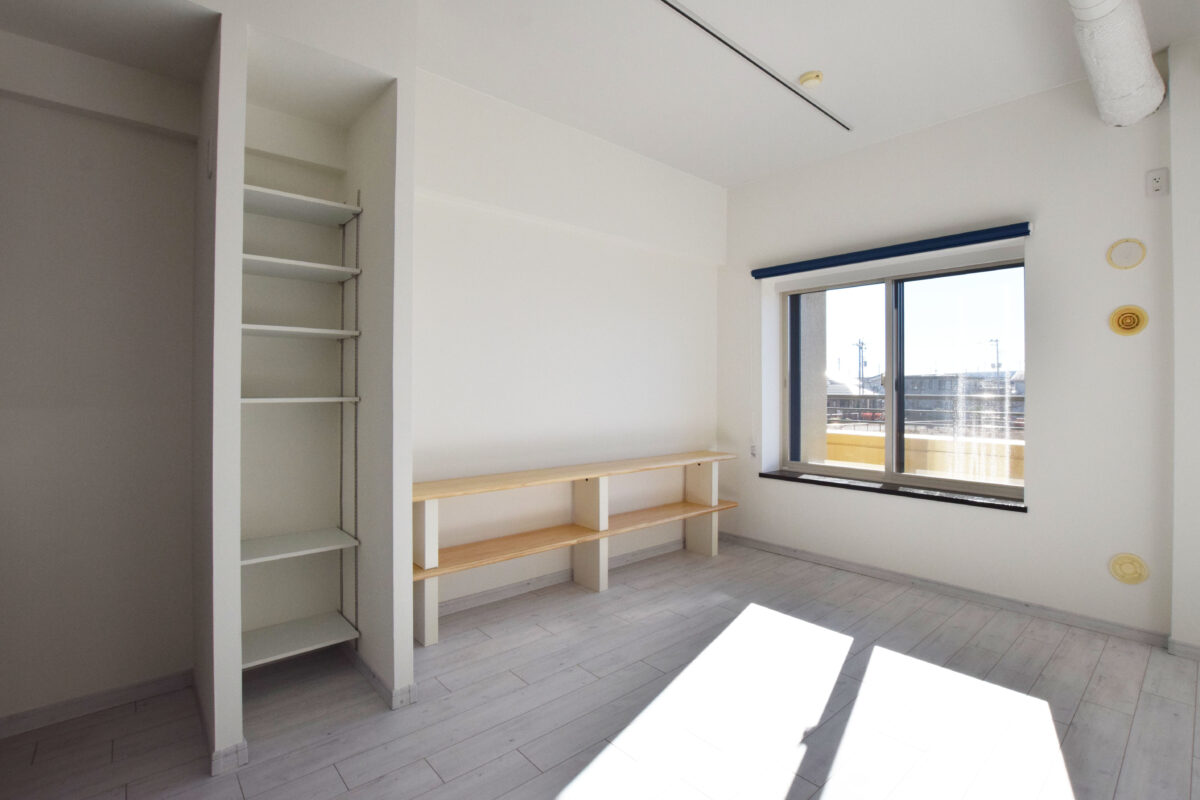 間取り変更(1LDKへ)、内窓・ロールスクローン設置、収納造作家具設置、押入れ解体→収納造作、床フローリングへ張替、スイッチ・コンセント交換 |